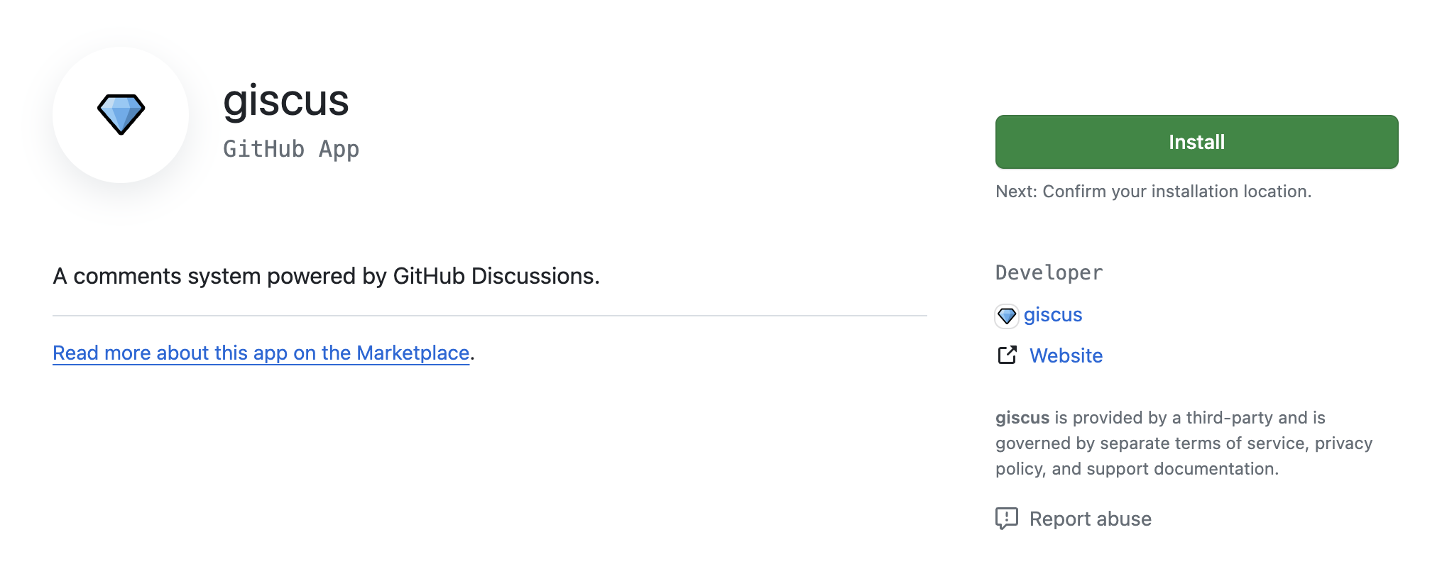 이제 giscus GitHub App을 설치해볼 차례입니다.